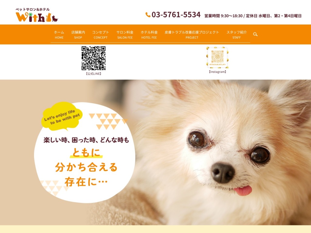 | ペットサロン&ホテルWith | 電話・Web予約 | 最小限(時間指定可) | 小型犬:約2時間、中型犬:約2.5時間 |